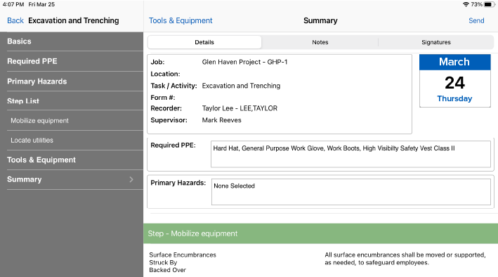 Schedule items for completion on specific days, assign out follow-ups for issues, and set-up time card warnings to help the field keep safety top of mind.