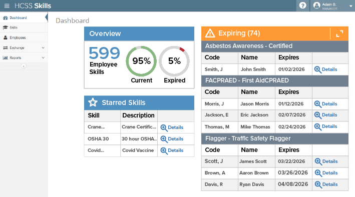 HCSS Safety will return your investment with proven savings in insurance premiums, dramatically improving the thoroughness and efficiency of safety data collection and storage, allowing you to easily retrieve safety data needed for claims. It also saves time and liability by efficiently managing certifications